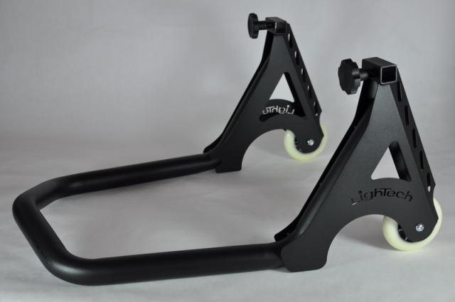 Béquille LighTech - Arrière - supports "V" - 2 roues: Caractéristiques: Black rear stand with fixed "V" adapters.