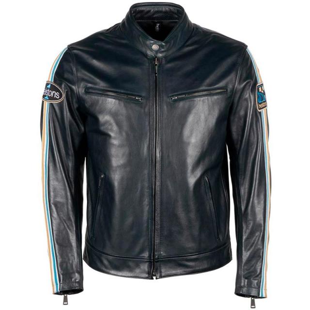 Blouson cuir HELSTONS Indy. Construction en cuir de bovin pleine fleur. Doublure corps et manches fixe en mesh 3D résistant à l'abrasion et aux brûlures munie de 2 poches zipées. Membrane étanche. Coques de protections amovibles coudes, épaules, dorsale.