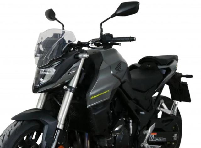 Bulle MRA Sport NSPM fumé: Caractéristiques: La bulle MRA Sport "NSPM" apporte au roadster un vrai caractère tout en restant fonctionnelle. Conçue pour épouser la ligne des Honda CB 750 Hornet (modèles 2023?2025), elle modifie subtilement le profil de la moto pour un look plus agressif et moderne. Sa teinte fumée renforce l'esthétique sombr …