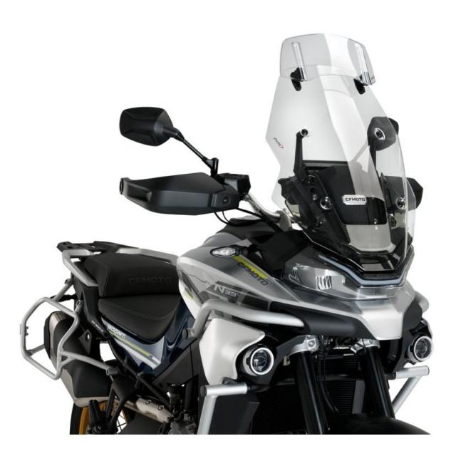 Bulle Puig Touring (+16 cm) avec visière (modèle avec ACC/Radar): Descriptif: La Bulle Touring avec visière est une bulle haute protectionElle se monte sur les points de fixation d'origine de la motoCompatible avec la version équipée d'un ACC/ radar uniquementDimension: H: 620 x L: 526 mm+ 16 cm supérieur à l'origine hors visièreLa bulle to …