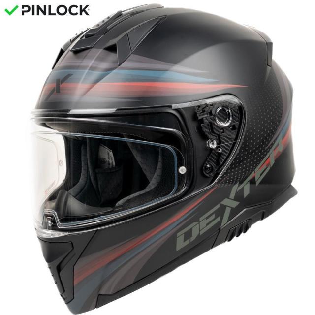 Casque intégral Dexter ELEVEN 22.06: Sécurité: Coque thermoplastique ABS pour une résistance aux chocs et un poids annoncé à 1420gr +/-50Boucle micrométrique efficace et rapideVisibilité: Ecran incolore prédisposé à recevoir la lentille Pinlock® 70Lentille Pinlock® offerte avec le casqueEcran avec champ de vision agrandi sur le latér …
