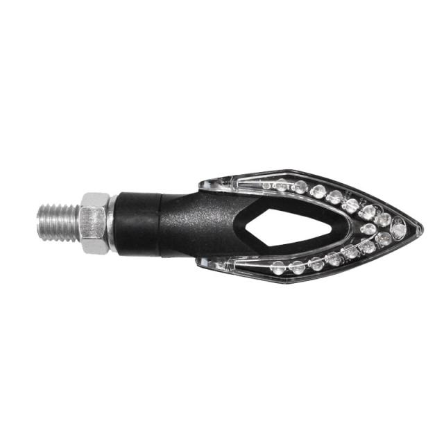 Brazoline vous présente ses clignotants à LED Spark:Position: avant ou arrièreHomologué CECorps plastiqueTige filetée de 8 mmDimension: L=25/l=11/H=14,5