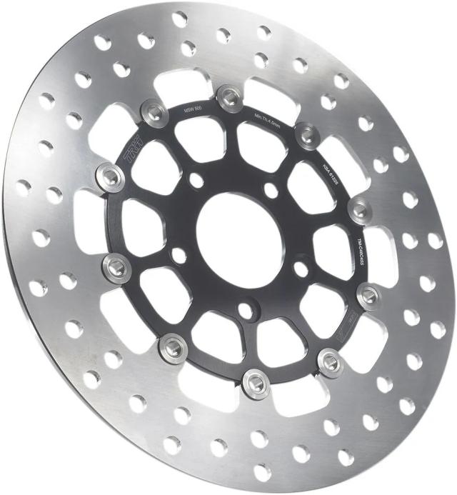 Disque de frein Rond Trw 17110842: Caractéristiques: TRW Disque de frein flottant (réf. MSW284) ? disque rond destiné aux motos routières/touring. Conçu autour d'une piste de freinage en acier robuste associée à une frète intérieure en aluminium anodisé gris titane, ce rotor flottant combine rigidité et gestion des dilatations thermiques …
