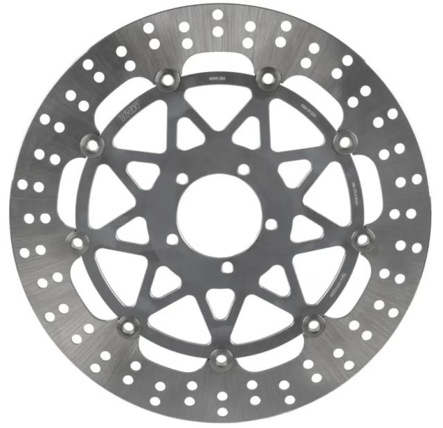 Disque de frein Rond Trw 17110842: Caractéristiques: TRW Disque de frein flottant (réf. MSW284) ? disque rond destiné aux motos routières/touring. Conçu autour d'une piste de freinage en acier robuste associée à une frète intérieure en aluminium anodisé gris titane, ce rotor flottant combine rigidité et gestion des dilatations thermiques …