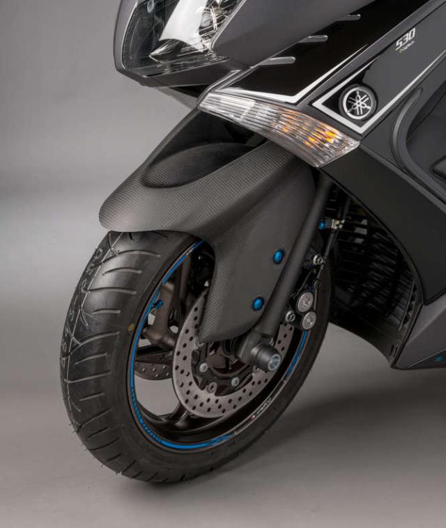 Garde boue AV LighTech carbone brillant T-MAX 530 (2015-2016) Plus léger que l'origine. Traitée avec un vernis protecteur et anti-UV. Attention : ne pas utiliser de détergent et toujours sécher la pièce en carbone pour éviter toute décoloration.