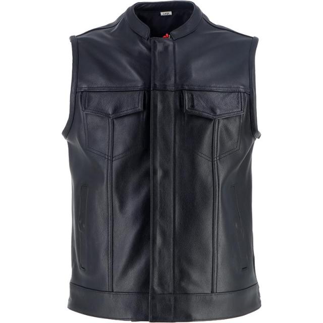 Gilet moto Helstons WEST: Présentation: Ce gilet en cuir de vachettes sans-manches est un pur produit motard. Robuste et souple, il est équipé de nombreuses poches, il allie idéalement style et pratique.Gilet sans-manches en cuir4 poches extérieures fermeture par boutons2 poches intérieuresAjustement taille par boutons