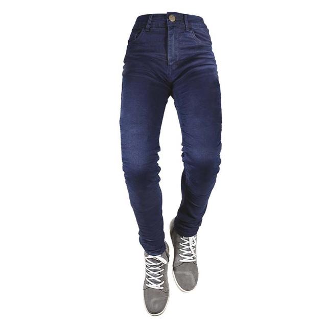 Jean Moto Pando Moto KUSARI COR: Caractéristiques: PANDO MOTO vous présente son jean moto femme KUSARI COR:Matière:Fabriqué en denim 11oz power-stretch CORDURA® et de la technologie COOLMAX®Protections :Protections genoux SAS-TEC TripleFlex (EN1621-1:2012) niveau 1 inclusesProtections genoux réglables en hauteurPoches pour protections de ha …