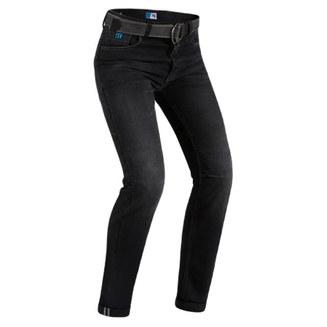 Jean Moto PMJ SARA: Matière: T-Tex®: Technologie monocouche Twaron®Protections: Protections genoux certifiées CE 1621-1, réglables et amoviblesProtections de hanches certifiées CE 1621-1, amoviblesLes "+": Coupe slim, taille hauteSans coutures extérieures
