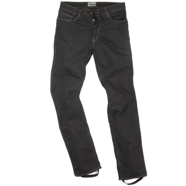 Jean denim renforcé. 2 poches à l'avant et 2 poches à l'arrière. Coupe droite. Protections CE aux genoux et aux hanches. Homologation CE.