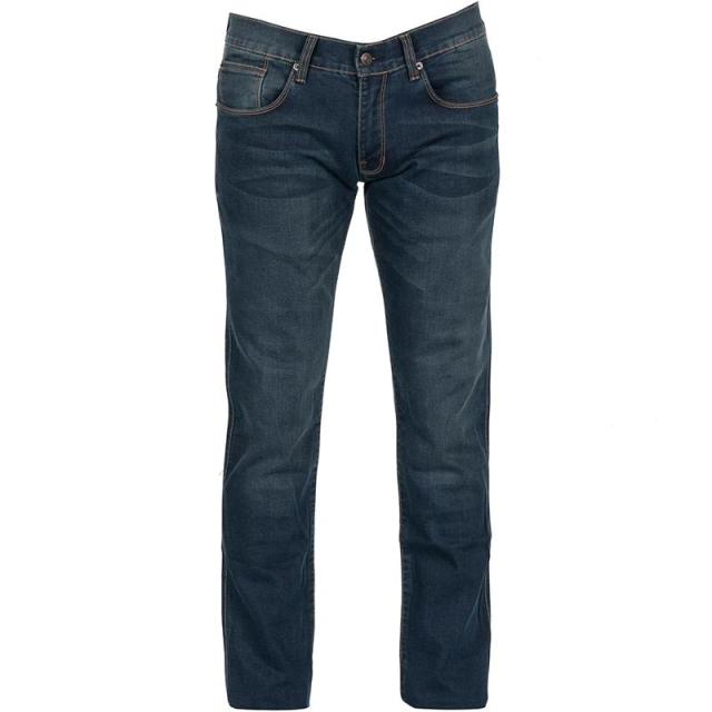 Jeans moto pour homme. Coupe ajustée. Toile de coton et fibres aramides. 2 poches avant. 2 poches arrière. Protections BETAC amovibles hanches. Protections BETAC amovibles genoux et ajustables en hauteur. Homologué CE niveau AA.