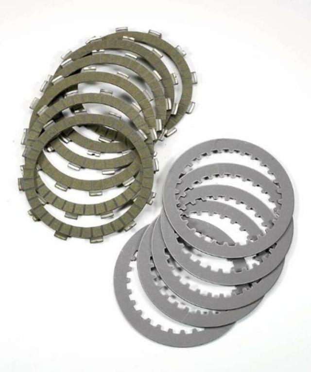 Kit disques garnis et disques lisses Newfren 1018226: Caractéristiques: L'embrayage d'une moto est généralement multi-disques à bain d'huile. (Exception : pour les marques Ducati, Aprilia qui possèdent des embrayages à sec). Nous vous conseillons de changer le jeu de disques (disques garnis et disques lisses), ainsi que les ressorts et le joi …