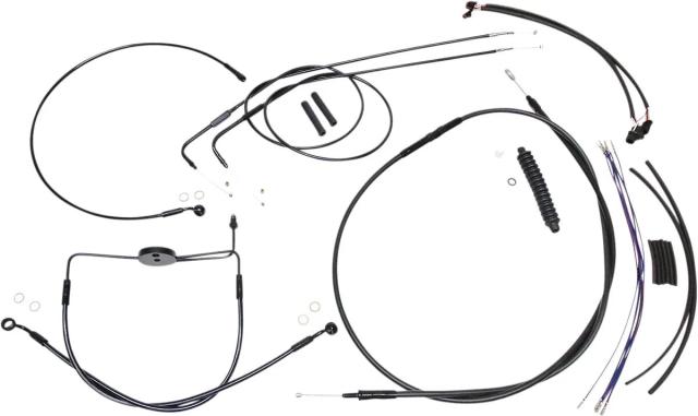 Kit installation guidon Magnum 06101011: Caractéristiques: Kit de câbles MAGNUM SHIELDING Black Pearl? (Réf. fabricant : 487281) Ce kit d?installation dédié aux guidons « ape hanger » (avec rehausseurs 2") regroupe l?ensemble des câbles et durites nécessaires pour une installation propre et homogène sur machines routières/touring. Finiti …