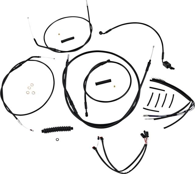 Kit installation guidon Magnum 06101011: Caractéristiques: Kit de câbles MAGNUM SHIELDING Black Pearl? (Réf. fabricant : 487281) Ce kit d?installation dédié aux guidons « ape hanger » (avec rehausseurs 2") regroupe l?ensemble des câbles et durites nécessaires pour une installation propre et homogène sur machines routières/touring. Finiti …