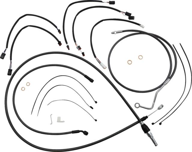 Kit installation guidon Magnum 06101011: Caractéristiques: Kit de câbles MAGNUM SHIELDING Black Pearl? (Réf. fabricant : 487281) Ce kit d?installation dédié aux guidons « ape hanger » (avec rehausseurs 2") regroupe l?ensemble des câbles et durites nécessaires pour une installation propre et homogène sur machines routières/touring. Finiti …