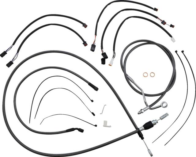 Kit installation guidon Magnum 06101011: Caractéristiques: Kit de câbles MAGNUM SHIELDING Black Pearl? (Réf. fabricant : 487281) Ce kit d?installation dédié aux guidons « ape hanger » (avec rehausseurs 2") regroupe l?ensemble des câbles et durites nécessaires pour une installation propre et homogène sur machines routières/touring. Finiti …