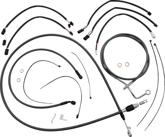 Kit installation guidon Magnum 06101011: Caractéristiques: Kit de câbles MAGNUM SHIELDING Black Pearl? (Réf. fabricant : 487281) Ce kit d?installation dédié aux guidons « ape hanger » (avec rehausseurs 2") regroupe l?ensemble des câbles et durites nécessaires pour une installation propre et homogène sur machines routières/touring. Finiti …