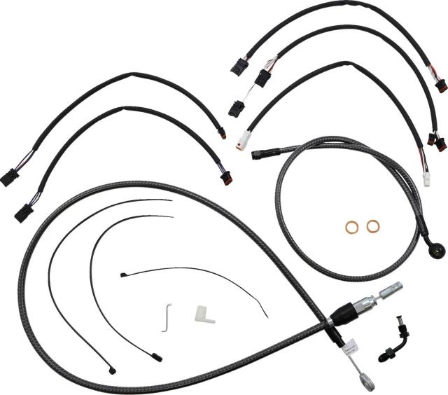 Kit installation guidon Magnum 06620468: Caractéristiques: Kit de câbles Magnum Shielding (réf. fabricant 387304) ? ensemble complet pour guidons ape hanger 10" (25,5 cm). Conçu pour remplacer liaisons accélérateur, ralenti, embrayage (ou alternative hydraulique) et durites de frein sur machines touring, ce kit rassemble câbles et durites as …