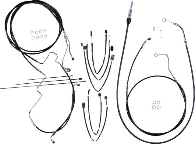 Kit installation guidon Magnum 06101011: Caractéristiques: Kit de câbles MAGNUM SHIELDING Black Pearl? (Réf. fabricant : 487281) Ce kit d?installation dédié aux guidons « ape hanger » (avec rehausseurs 2") regroupe l?ensemble des câbles et durites nécessaires pour une installation propre et homogène sur machines routières/touring. Finiti …