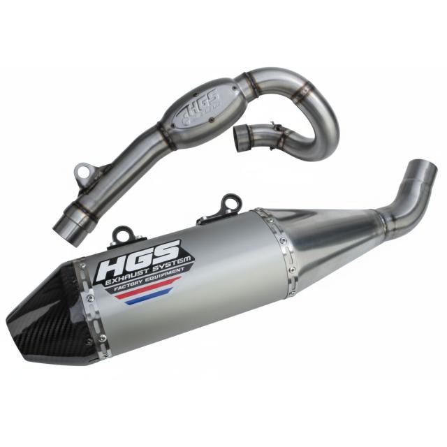 Ligne complète 4 Temps HGS Aluminium rouge avec embout en carboneHGS est une marque utilisée par les plus grands pilotes pour leur puissance supérieure dans n'importe quelles conditions d'utilisation.Gain de puissance élevé.Assemblement de la plus haute qualité avec une finition irréprochable.