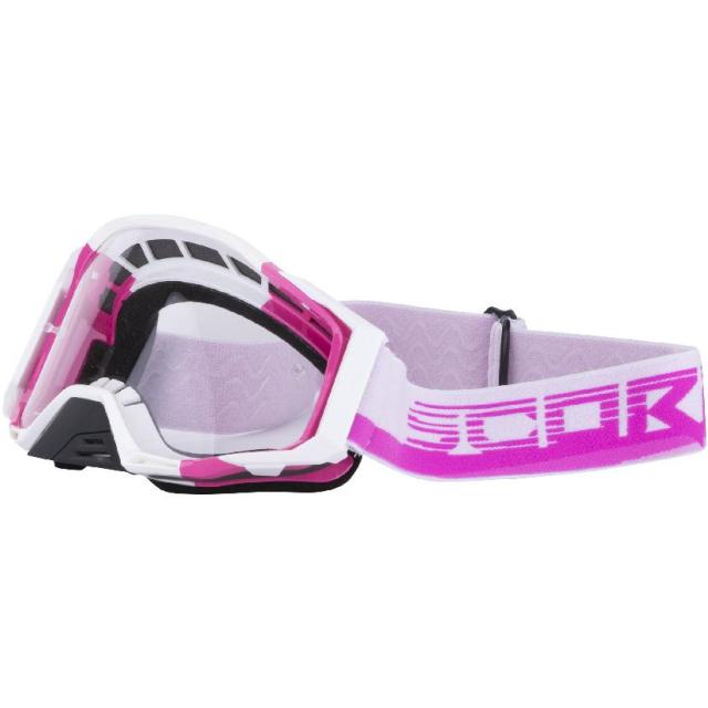 Masque cross. Écran large haut de gamme. Design VLS (Variable Lens System™). Troisième point de fixation du tear off montée sur la bande. Sac en microfibre pour masque inclus. Lentille Lexan® pour une protection anti-UV intégrale. Verres Clear Lexan.