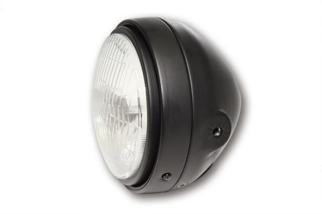 Phare avant Shin Yo El Paso 6 1/2" noir brillant: Caractéristiques: Phare SHIN YO El Paso 6 1/2" noir brillant (Réf. fabricant : 223-074) : un projecteur avant au style rétro, parfaitement dans l'esprit custom. Sa coque en acier noir brillant et sa forme sphérique typée « vintage pointue à l'arrière » apportent une finition soignée aux pr …