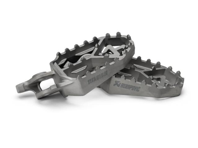 Repose-pieds Akrapovic Titane: Caractéristiques: Ces repose-pieds monoblocs ont été conçus pour répondre à des exigences élevées de résistance mécanique et de stabilité, assurant maintien, grip et confort sur route et en tout-terrain.Les dents centrales assurent une répartition efficace du poids et un contrôle optimal sur une large sur …