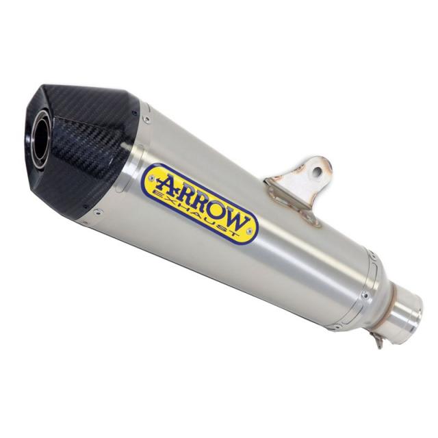Arrow introduit sur le marché la nouvelle gamme de silencieux X-Kone. Développé à l'origine pour être utilisé en" ligne complète "compétition" et "compétition full titane » pour une utilisation sur circuit, le silencieux est maintenant disponible pour une série de naked et sportive. Le silencieux X-Kone est homologué sur route avec chicane amovible, avec des composants internes en acier inoxydable, la réduction du bruit par absorption (pour réduire le poids de la structure interne). Le corps du silencieux est fait en Nichrom (alliage d'acier inoxydable) avec une finition satinée. En fonction des applications, le silencieux X-Kone peuvent être montés sur le collecteur d'origine ou le collecteur racing Arrow. Le silencieux est fixé sur le repose-pied par l'intermédiaire d'une patte, soudée sur le corps du silencieux. Le poids d'un silencieux X-Kone est d'environ 2,2 kg (30% à 40% de moins par rapport au silencieux d'origine), et la puissance et de couple de sortie sont nettement supérieurs. La mise en place d'un silencieux X-Kone n'impose pas de changer les paramètres d'ECU ou d'ajouter le module anECU. Un contrôle sur le niveau de CO est tout de même suggéré.Caractéristiques et gains max:+ 1.00 hp ( 146 hp > 147 hp )+ 0.98 Nm (104.34 Nm > 105.32 Nm )- 4.33 klgs ( 6.5 klgs > 2.17 klgs )+ 2 db ( 100 db > 102 db )