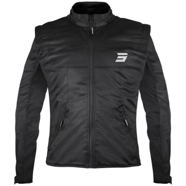 Veste légère coupe-vent et déperlante type enduro. Coupe ajustée ergonomique grande mobilité. Construction softshell strecth. Insert spandex aux épaules pour un meilleur confort et une plus grande mobilité. Manches amovibles. Poignets ajustables par velcro. Poches extérieures et intérieures. Zippers étanches.